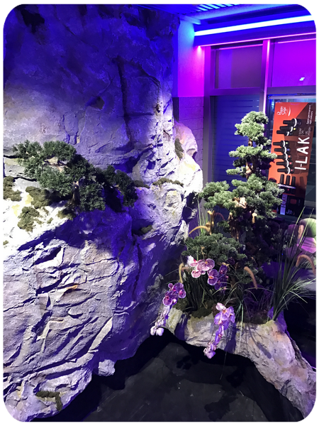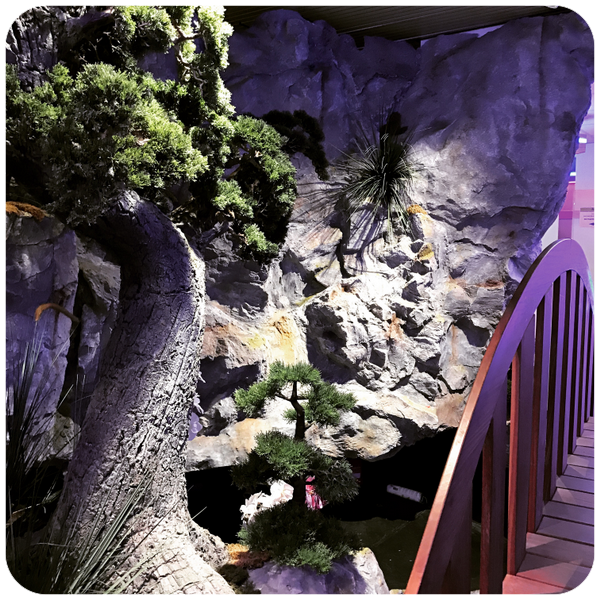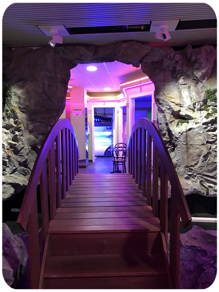 Holzbrücke, LED Beleuchtung, Sitzplätze,